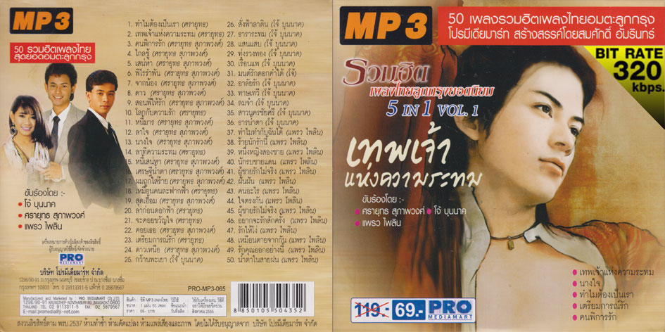 1CD MP3 :: MP3 รวมฮิตเพลงไทยลูกกรุงยอดนิยม ขับร้องโดย ศรายุทธ สุภาพวงศ์, โจ้ บุนนาค, แพรว ไพลิน 320kbps.