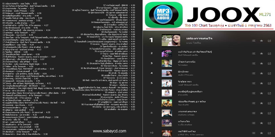 1CD MP3 :: JOOX Top 100 Chart ไทยลูกทุ่ง • ประจำวันที่ 6 กรกฎาคม 2563