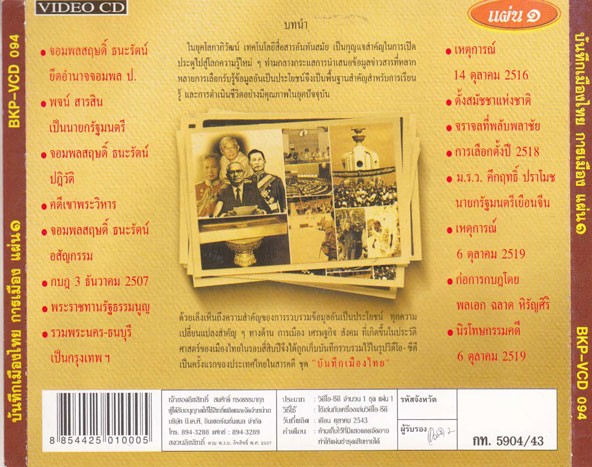 VCD บันทึกเมืองไทย แผ่นที่ 1